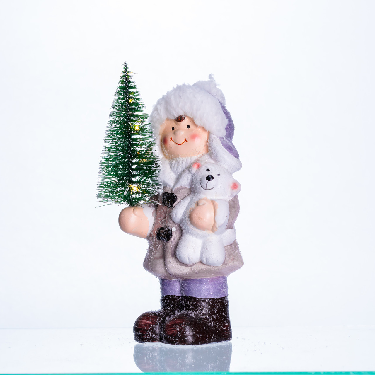 Чарівна порцелянова фігурка з новорічним настроєм. Дівчинка з ялинкою — композиція, яка миттєво створює атмосферу тепла та затишку. Поверхня виробу покрита легким «сніжним» напиленням, а ялинка прикрашена мініатюрними вогниками. Особливий шарм фігурці надає підсвітка, яка м'яко освітлює кімнату, роблячи її ще більш затишною і святковою. Основні характеристики новорічної фігурки для дому на подарунок: Матеріал: порцеляна; Розмір: 9×6×18 см. Фігурка стане чудовим елементом новорічного оформлення дому, офісу, вітрини магазину або дитячої кімнати, додаючи інтер'єру затишку та святковий настрій.